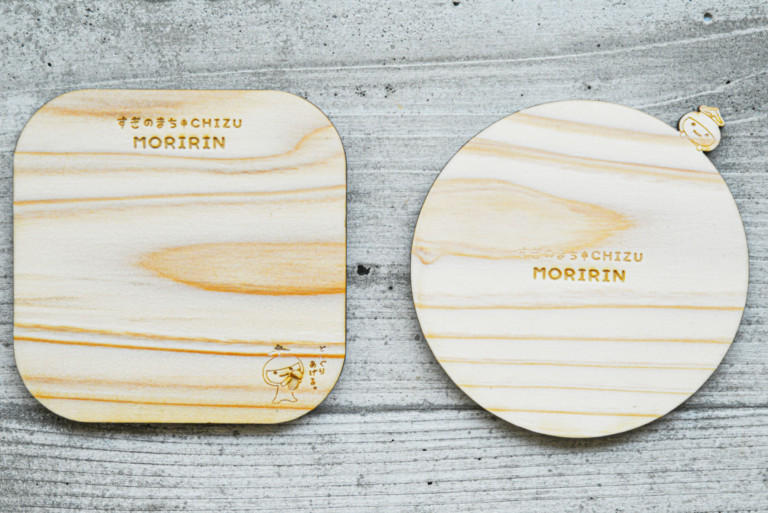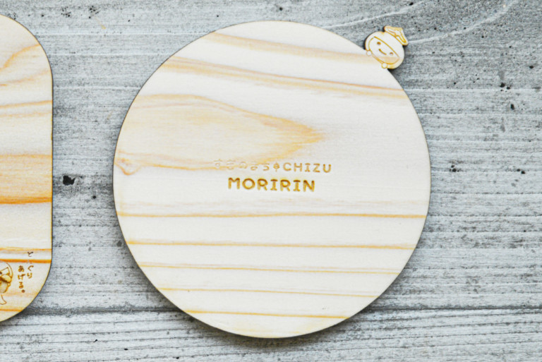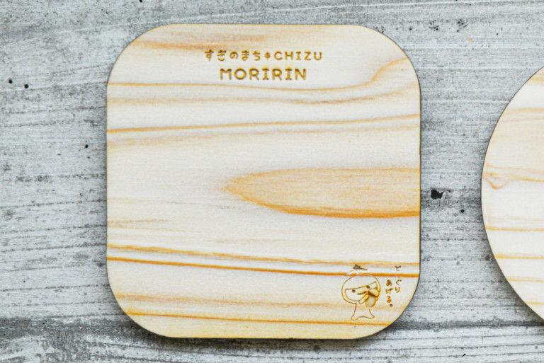 智頭杉の特徴を伝えるノベルティグッズとして、智頭町森林セラピーイメージキャラクター「もりりん」をモチーフにしたコースターを制作しました。